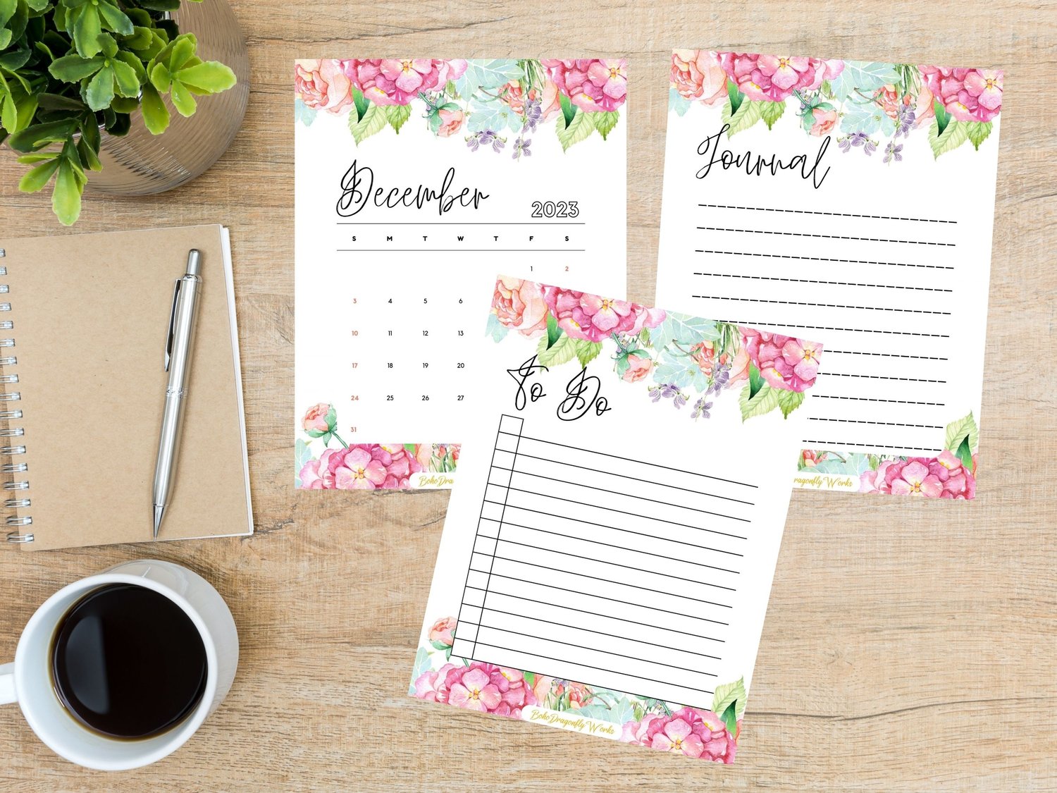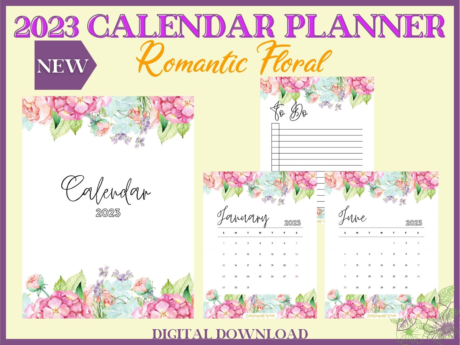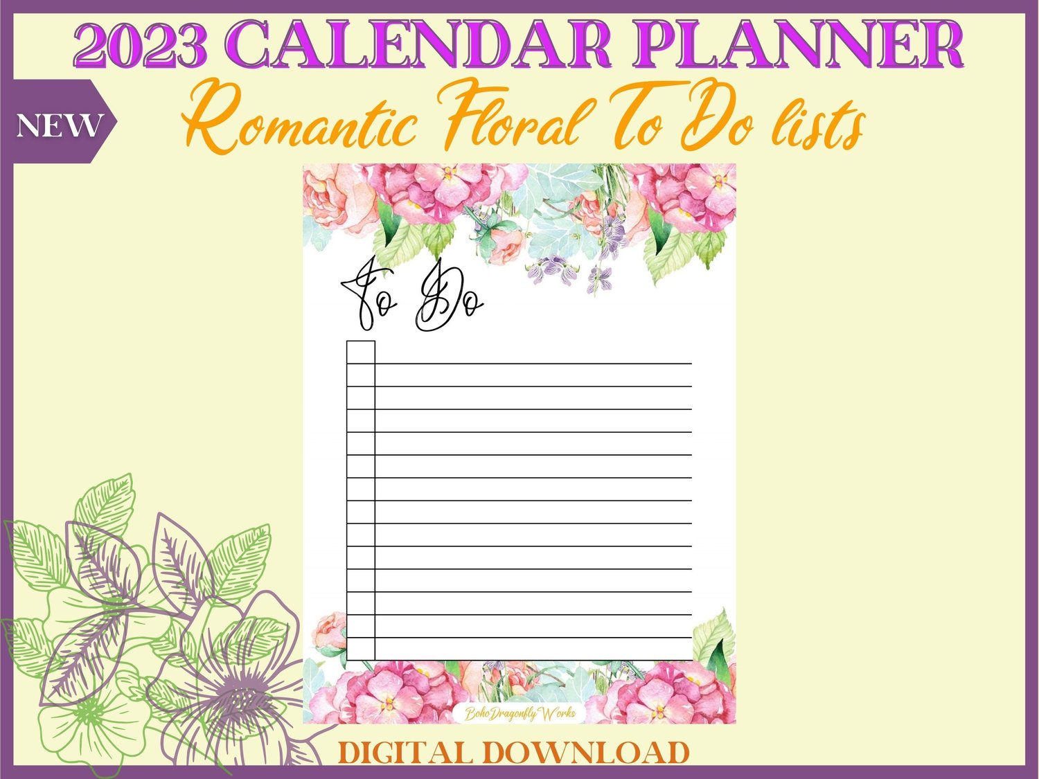 Best Gorgeous Floral 2023 Calendar & To Do Planner Printable PDF for women. Simple, easy planner with lined notes for tasks, appointments