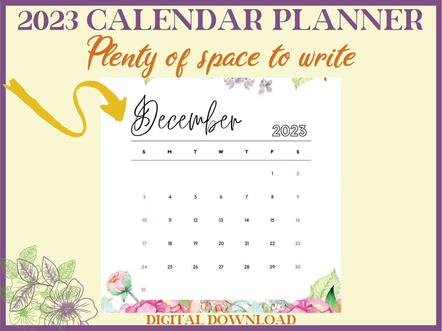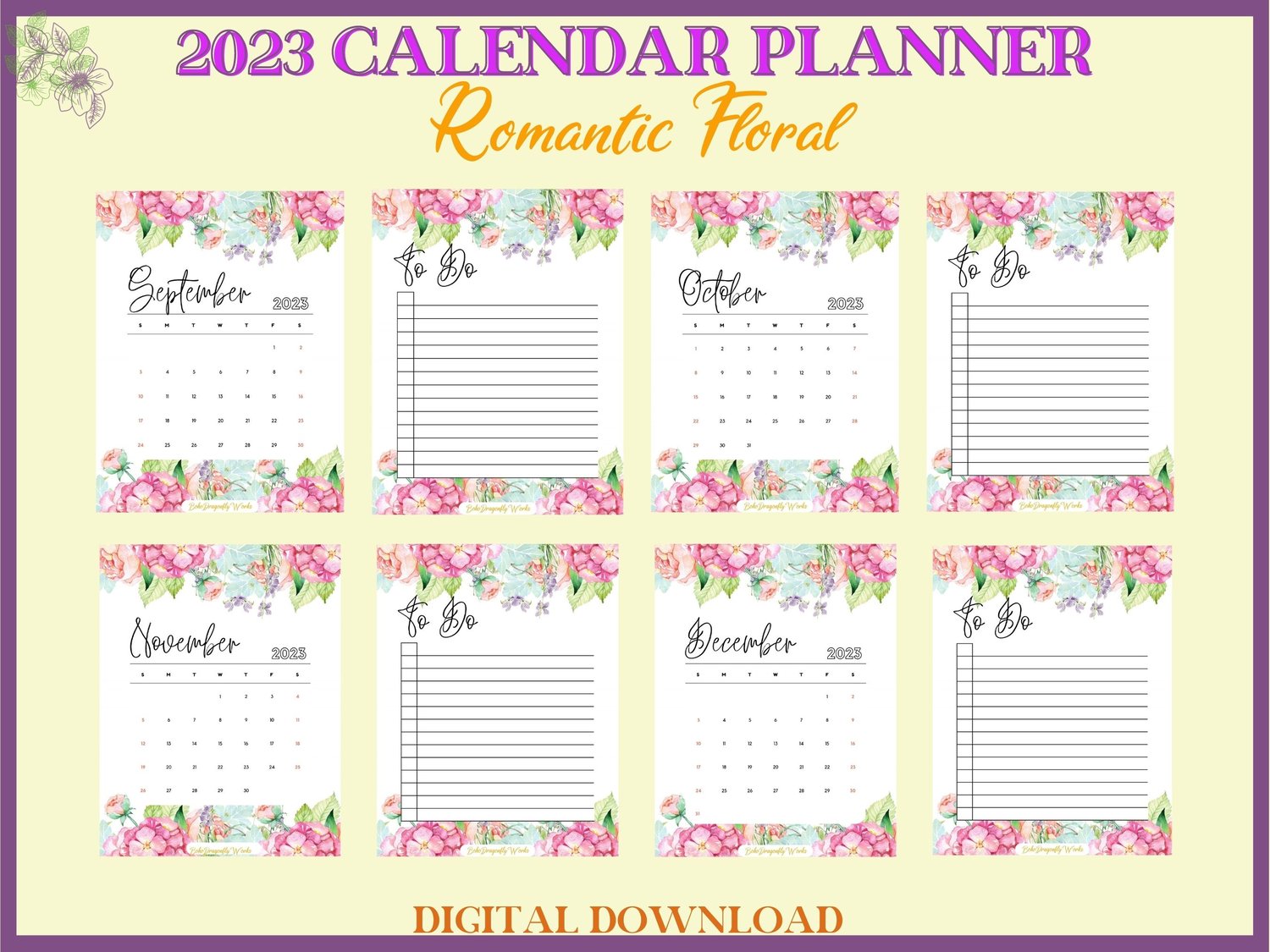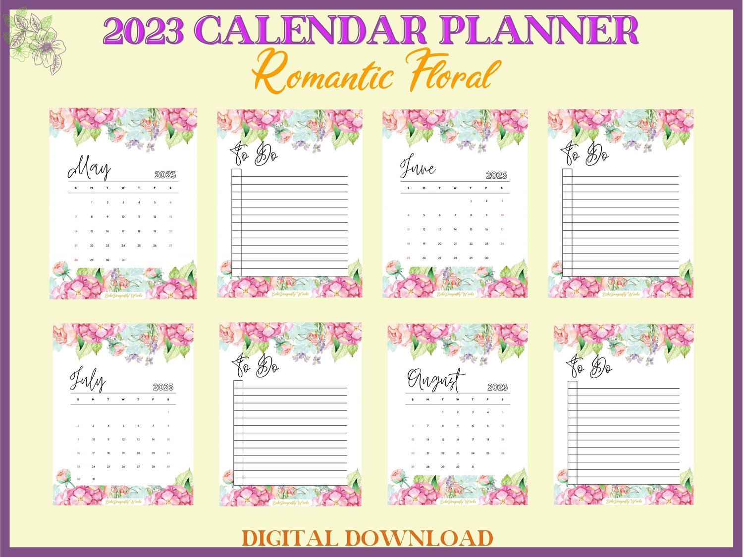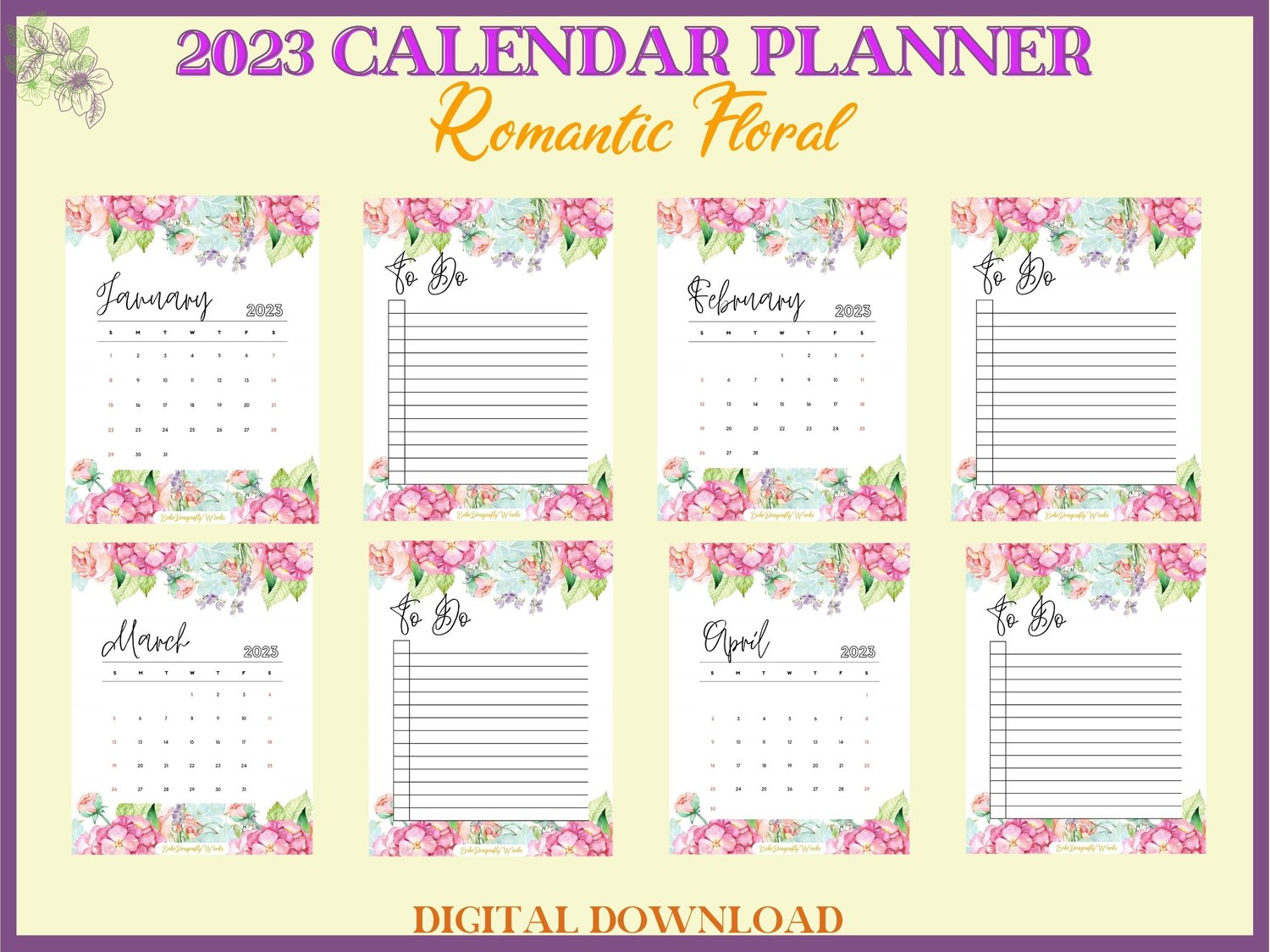 Best Gorgeous Floral 2023 Calendar & To Do Planner Printable PDF for women. Simple, easy planner with lined notes for tasks, appointments