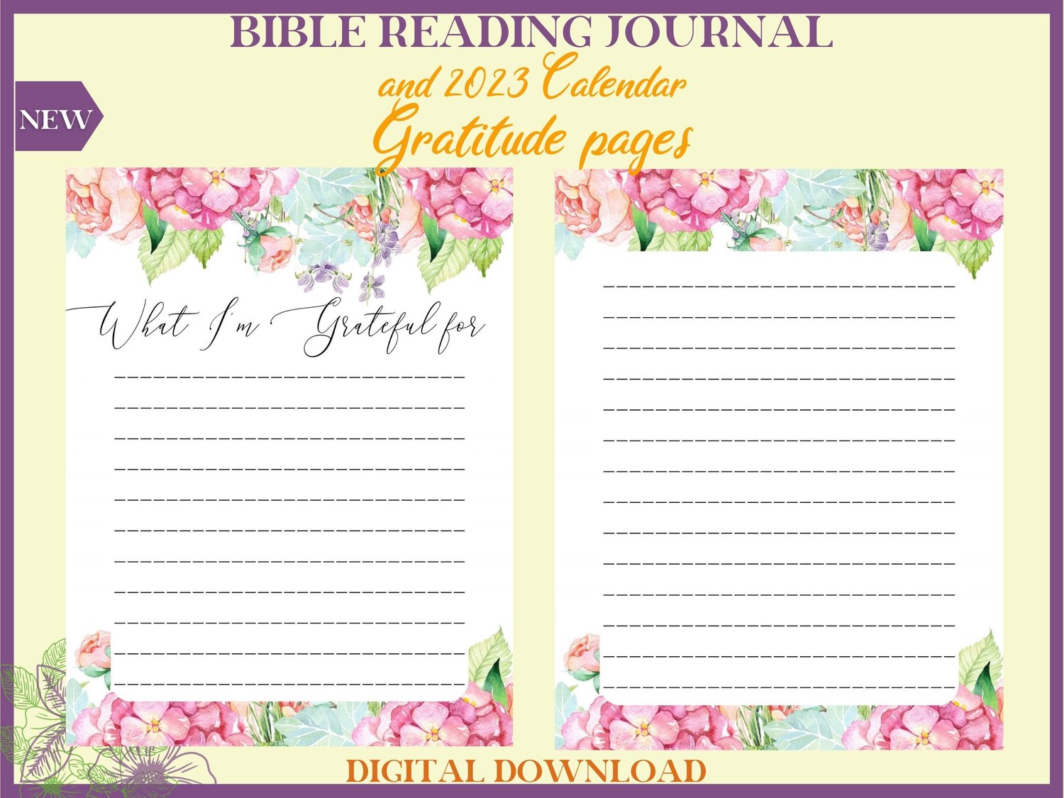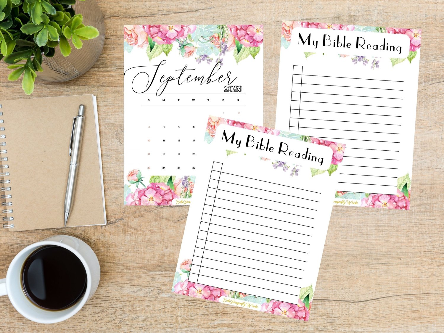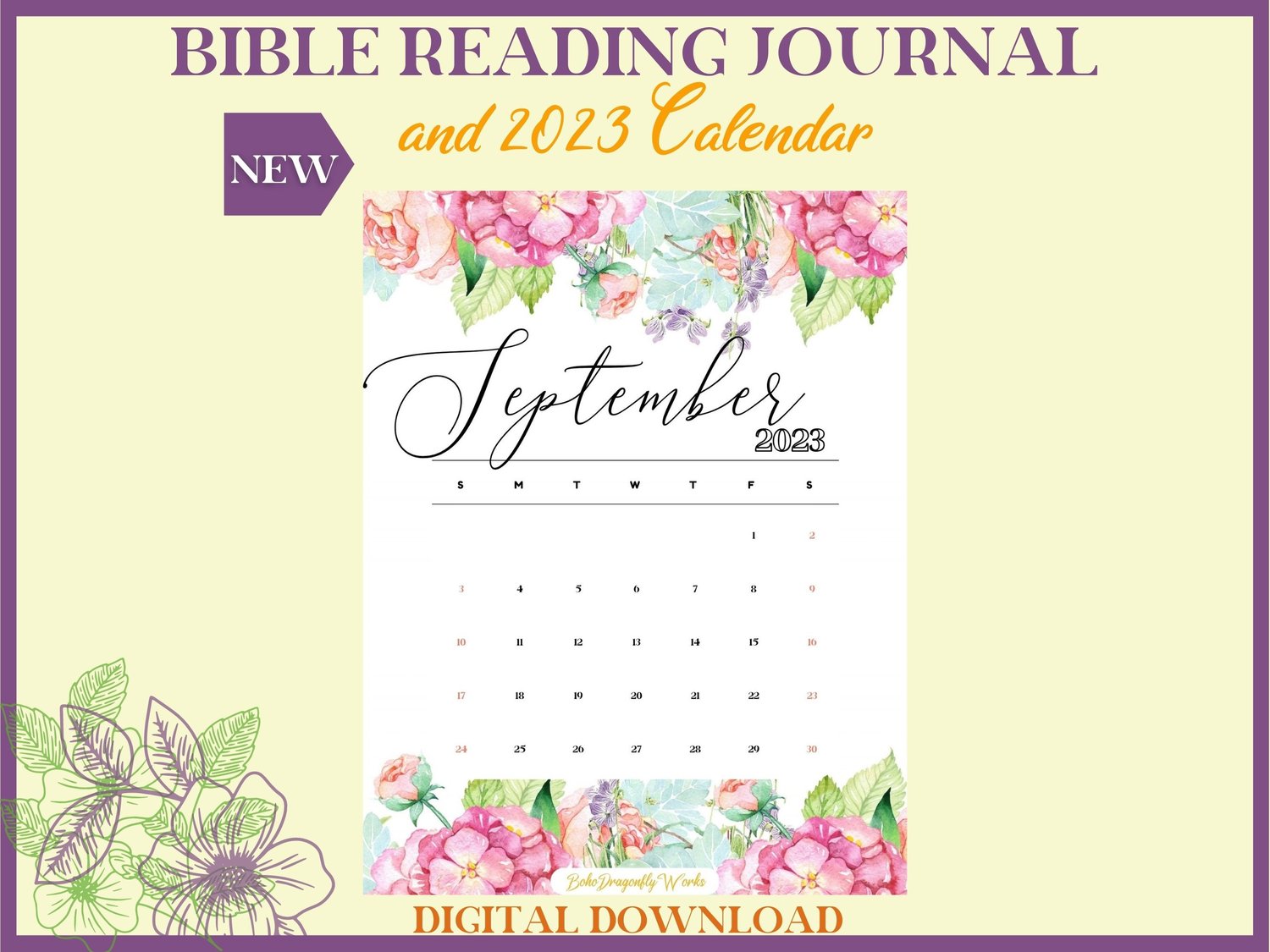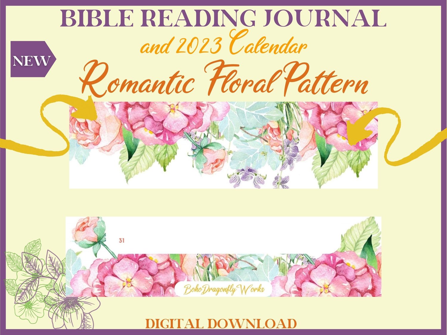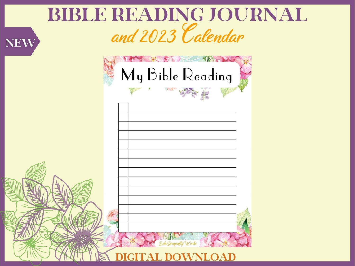 Floral Bible Reading Journal & 2023 Calendar Printable PDF for women. A simple journal for study, meditation.
